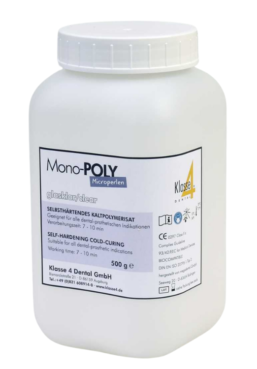 - Mono-POLY clear to samoutwardzalny polimer utwardzany na zimno z mikrogranulek na bazie metakrylanu metylu.