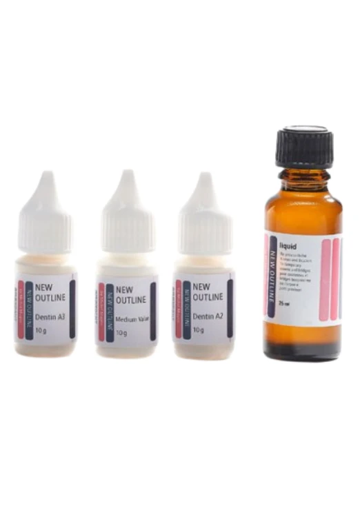 W zależności od wskazań i preferencji można wybierać spośród różnych zestawów: Od zestawu Intro, pozwalającego w ekonomiczny sposób wypróbować system, przez popularny zestaw startowy S wykorzystywany do podstawowej pracy z New Outline, aż po zestaw startowy XL z wszechstronną gamą kolorów. Zestawy XS, S i XL można dowolnie uzupełniać. Zabezpieczająca powierzchnię glazura i odpowiedni primer są zawarte we wszystkich zestawach w rozmiarze S i większych. Zestaw XL zawiera również płyn wiążący (bond), który zapewnia chemiczne wiązanie z innymi akrylami i kompozytami. Każdy zestaw jest dostarczany wraz z ilustrowanym podręcznikiem techniki napisanym przez Michela Magne'a.