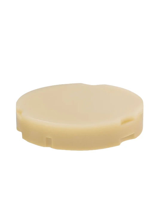 Bloczek produkowany z żywicy akrylowej Rr-HCL-PMMA (wysoce usieciowany i wzmocniony polimetakrylan metylu o wysokiej masie cząsteczkowej), podobnej do materiału, który jest używany do produkcji protez.
