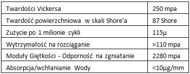 Bloczek produkowany z żywicy akrylowej Rr-HCL-PMMA (wysoce usieciowany i wzmocniony polimetakrylan metylu o wysokiej masie cząsteczkowej), podobnej do materiału, który jest używany do produkcji protez.