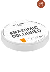 Zazwyczaj tlenki metalu konieczne do koloryzacji uzupełnień są aplikowane na strukturę cyrkonową podczas oddzielnego kroku w trakcie tworzenia pracy (poprzez zanurzenie pracy w płynie barwiącym lub podczas nakładania koloru za pomocą pędzli). W przypadku bloczka Anatomic Coloured, substancje koloryzujące są dodawane do proszku cyrkonowego już podczas pierwszych etapów jego produkcji. Takie rozwiązanie pozwala na uzyskanie jednorodnego koloru na całej powierzchni materiału.