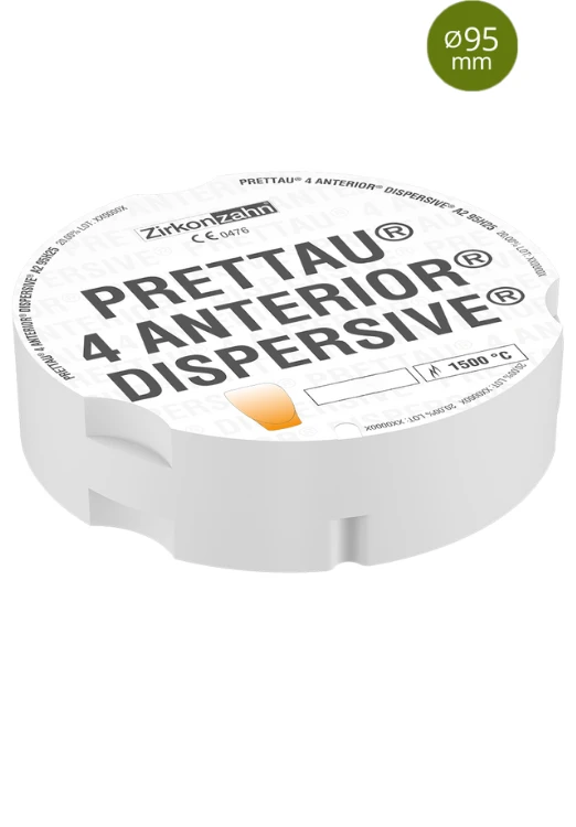 Prettau® 4 Anterior® Dispersive® nie powoduje odpryskiwania ceramiki ani ścierania antagonisty. Ze względu na doskonałe właściwości estetyczne i wysoką przezierność materiał jest specjalnie zaprojektowany do odcinka przedniego, ale dzięki wysokiej wytrzymałości na zginanie ok. 600 MPa można go również bez problemu stosować do wykonywania zębów bocznych. Do obróbki Prettau® 4 Anterior® Dispersive® nie jest konieczne chłodzenie wodą ani wiertła diamentowe, co czyni ten materiał idealną alternatywą dla dwukrzemianu litu.