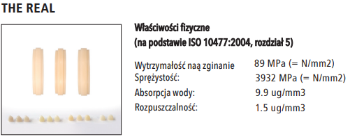- Łagodny dla ścierania i zatwierdzony do ostatecznych uzupełnień ze względu na swoje właściwości mechaniczne