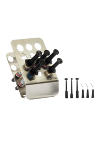 Zestaw wprowadzający o płynnej konsystencji z dwoma różnymi kolorami zębiny i odpowiadającym im odcieniem szkliwa.