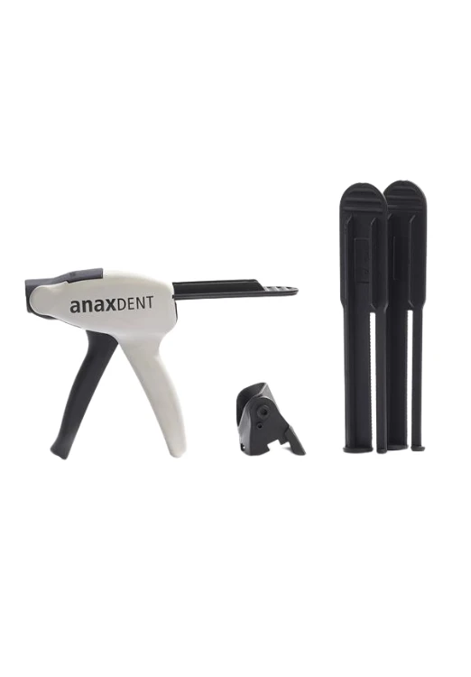 Uniwersalny pistolet dozujący pasujący do kartridży 1:1, 2:1, 4:1 i 10:1. Łatwo dostosowuje się do strzykawek kompozytowych anaxblend Big Block 20g i dozownika anaxdent 50g PMMA.