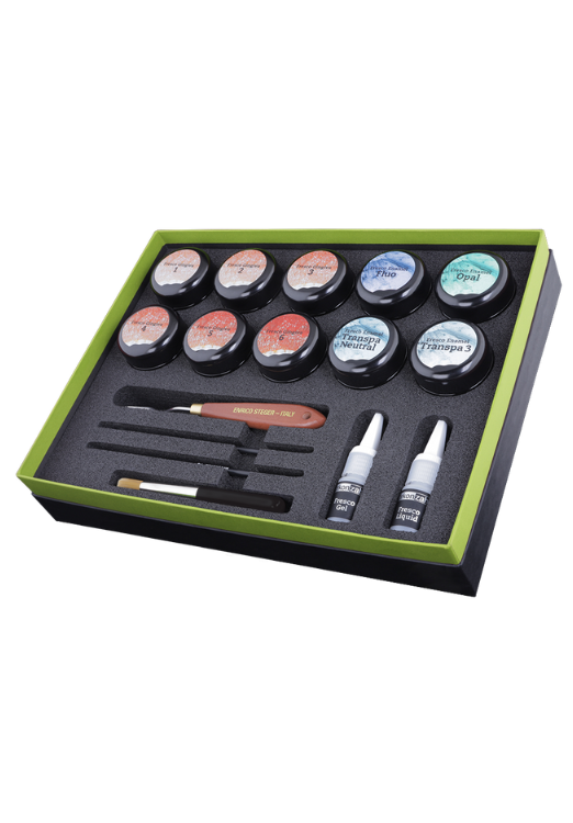 UWOLNIJ SWOJEGO WEWNĘTRZNEGO ARTYSTĘ POPRZEZ MIESZANIE I INDYWIDUALIZACJĘ KOLORÓW PAST CERAMICZNYCH Tip: Zmieszaj Fresco Gingiva i Fresco Enamel, aby uzyskać bardziej przejrzyste i jasne kolory |