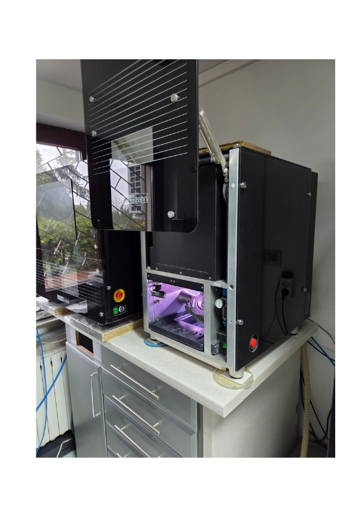 Maszyna na bieżąco serwisowana, po przeglądzie serwisowym II połowa 2025 roku (protokół do wglądu). Maszyna cały czas w użytku sprzedaż w związku z zakupem nowej frezarki Zirkonzahn M2